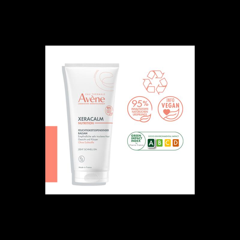 Baume hydratant et nourrissant pour les peaux sensibles et très sèches de toute la famille. Ce soin quotidien haute tolérance composé de 95% d’ingrédients d’origine naturelle renforce la barrière cutanée du visage et du corps. Il apaise les tiraillements, nourrit et hydrate pendant 48h*. Il est formulé avec de l’huile de chardon marie qui booste la synthèse de céramides pour une action anti-dessèchement. Sa texture onctueuse, non grasse et sans parfum permet une application et un habillage express. Il bénéficie d'une démarche écoresponsable. Son emballage 400ml contient 70% de matières recyclées. Le flacon est en plastique 100% recyclé**